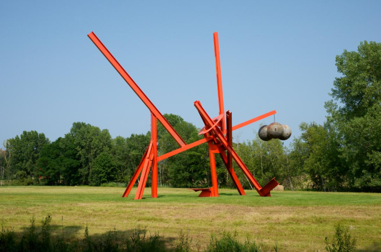 또한, 마크 디 수베로(Mark di Suvero)의 H빔을 엮어 만든 거대한 구조물들은 마치 공사장 크레인이나 거인의 장난감처럼 보입니다. 흥미로운 점은 이토록 이질적인 산업 재료들이 푸른 잔디밭 위에 놓였을 때, 오히려 그 웅장함으로 자연과 묘한 조화를 이룬다는 것입니다. 바람이 불면 거대한 강철이 끼익 소리를 내며 천천히 움직이기도 하는데, 이는 마치 강철 거인이 숨을 쉬는 듯한 느낌을 줍니다.