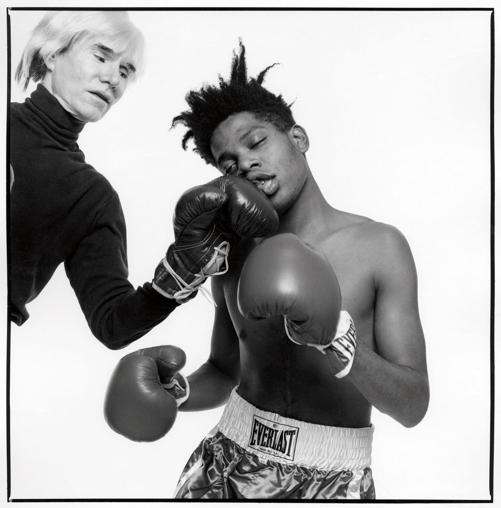 권투 포스터 속 두 사람의 눈빛을 다시 봅니다. 워홀은 짐짓 강한 척 팔짱을 끼고 있지만 어딘가 외로워 보이고, 바스키아는 챔피언 옆에서도 기죽지 않는 야생마 같습니다.